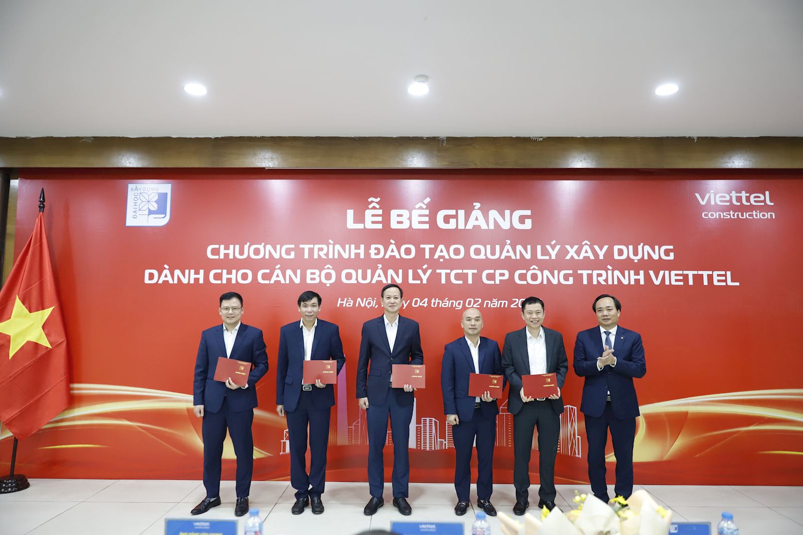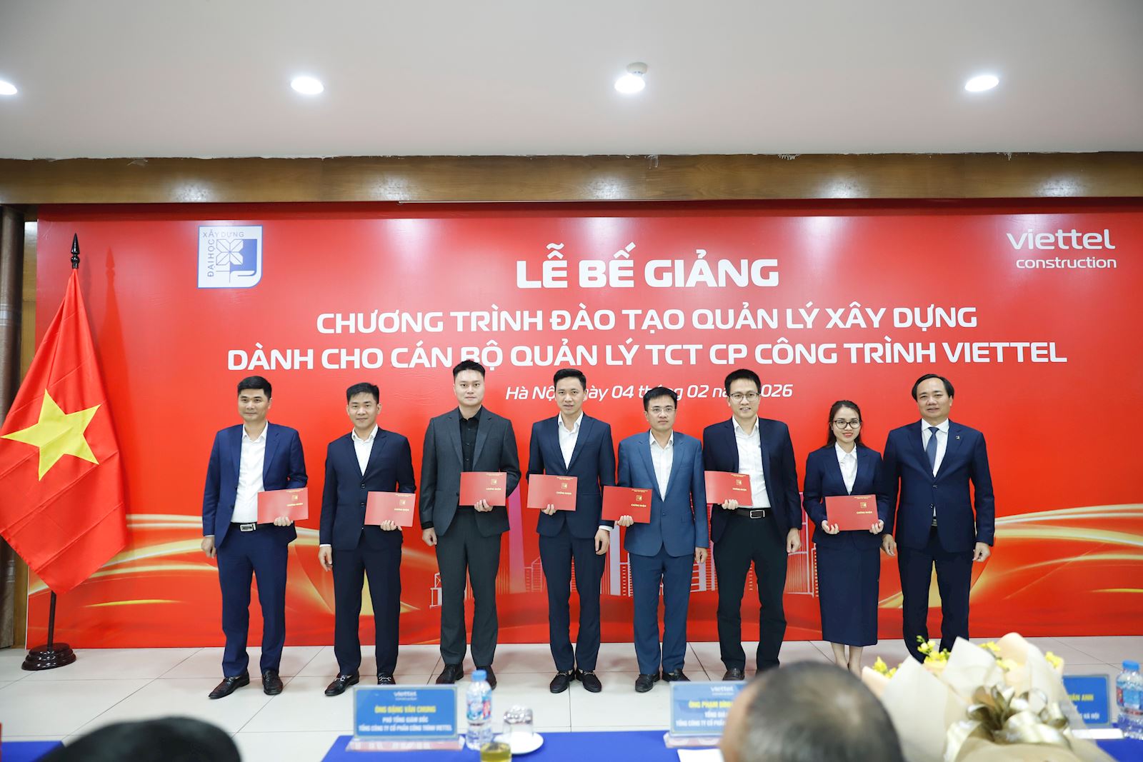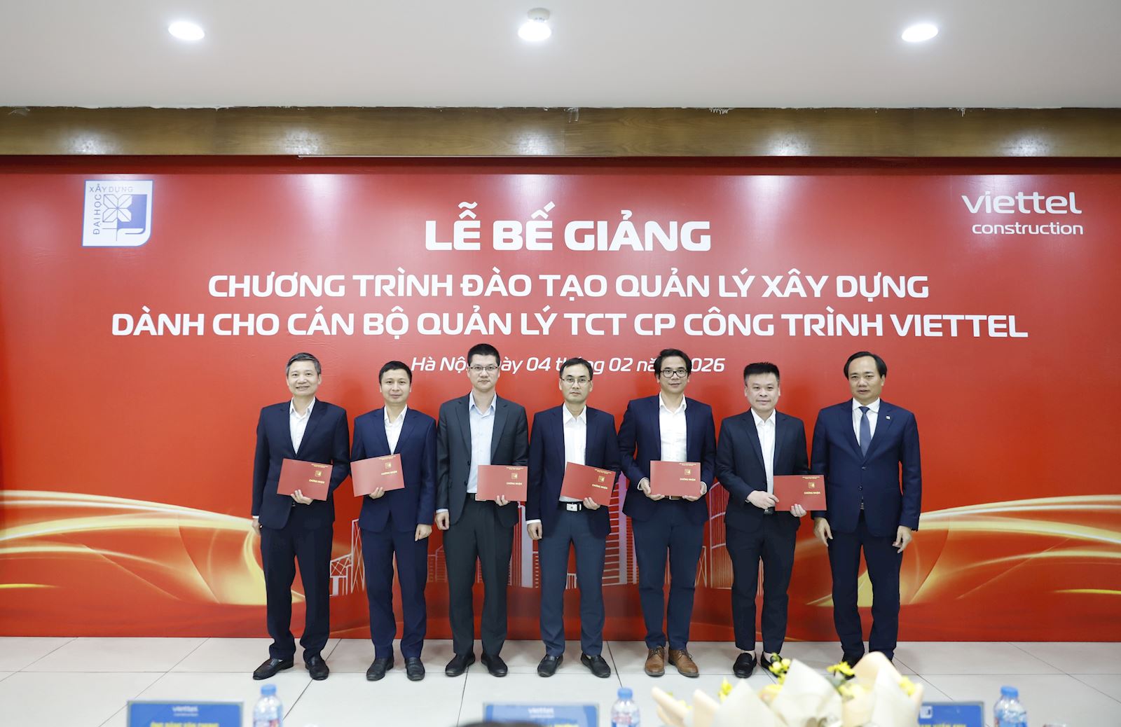Chiều ngày 04/02/2026, Trường Đại học Xây dựng Hà Nội (ĐHXDHN) phối hợp cùng Tổng Công ty Cổ phần Công trình Viettel (Viettel Construction) đã tổ chức thành công Lễ bế giảng Chương trình đào tạo Quản lý xây dựng. Buổi lễ đánh dấu cột mốc quan trọng trong mối quan hệ hợp tác chiến lược giữa nhà trường và doanh nghiệp.