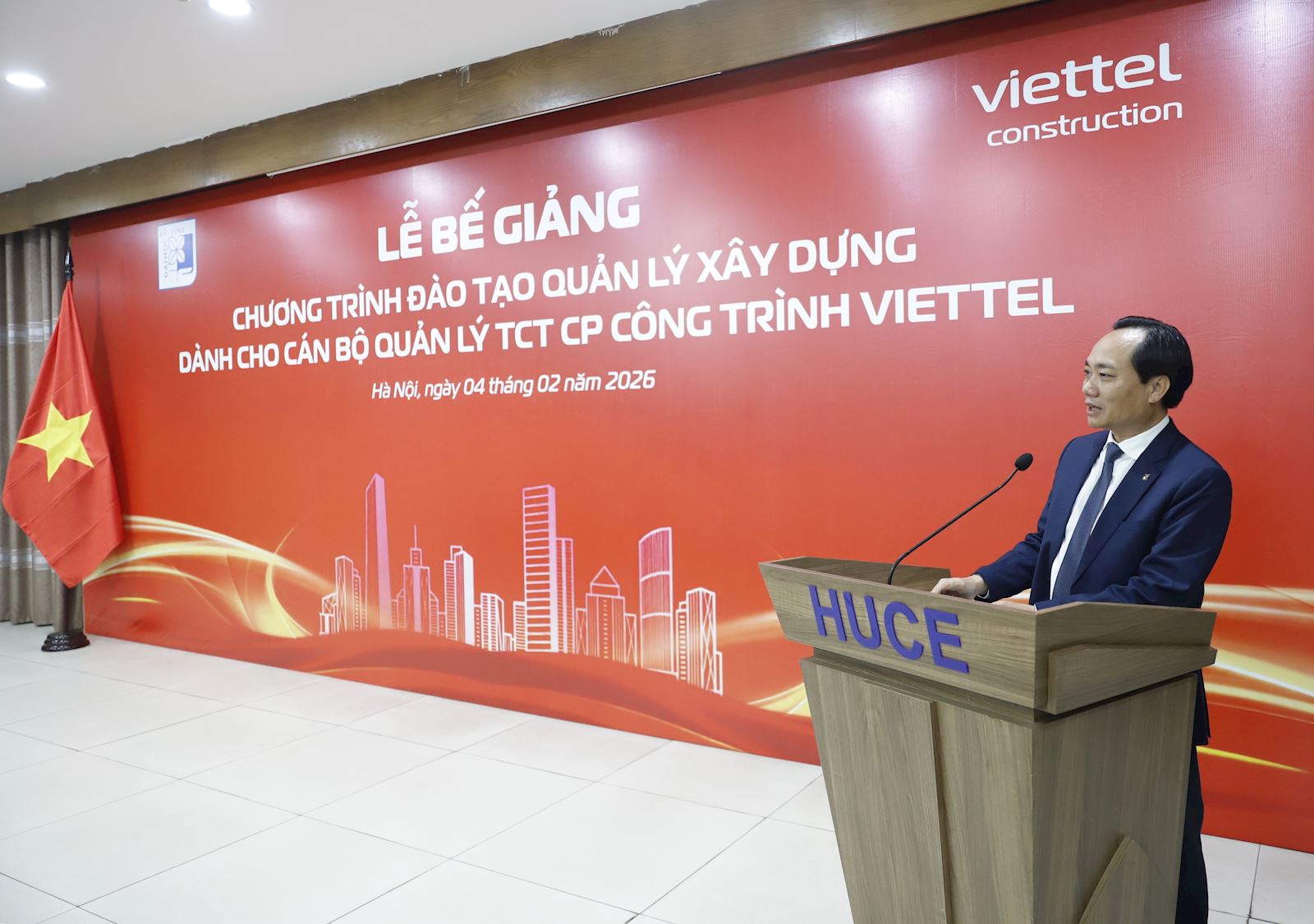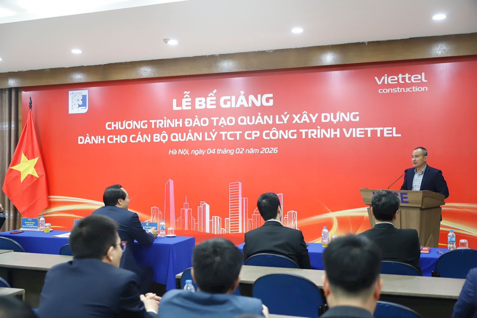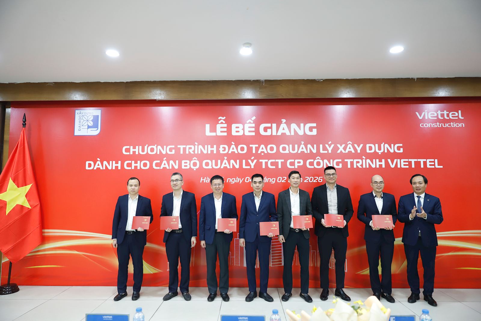 Chiều ngày 04/02/2026, Trường Đại học Xây dựng Hà Nội (ĐHXDHN) phối hợp cùng Tổng Công ty Cổ phần Công trình Viettel (Viettel Construction) đã tổ chức thành công Lễ bế giảng Chương trình đào tạo Quản lý xây dựng. Buổi lễ đánh dấu cột mốc quan trọng trong mối quan hệ hợp tác chiến lược giữa nhà trường và doanh nghiệp.
