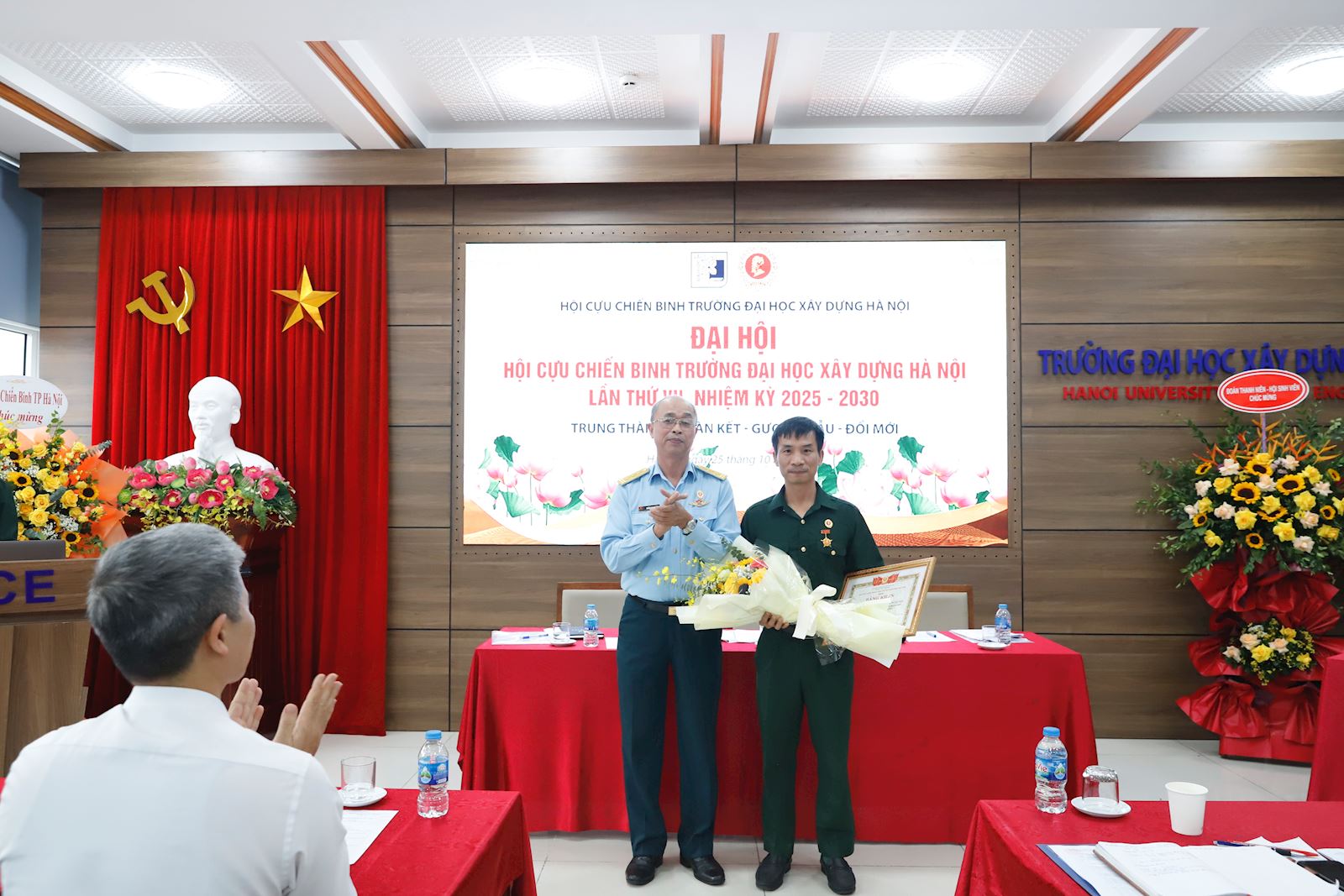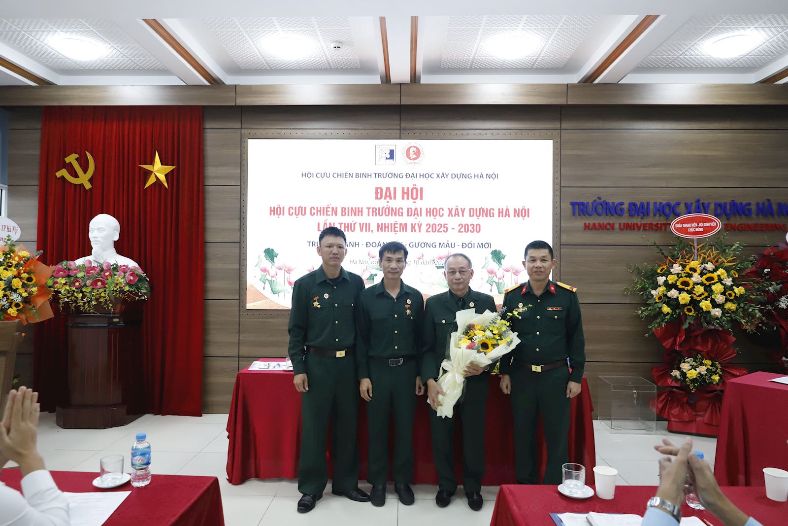 Ban Chấp hành Hội CCB Trường, nhiệm kỳ 2025-2030 ra mắt Đại hội, nhận hoa chúc mừng của đại diện hội CCB TP. Hà Nội và Trường ĐHXDHN