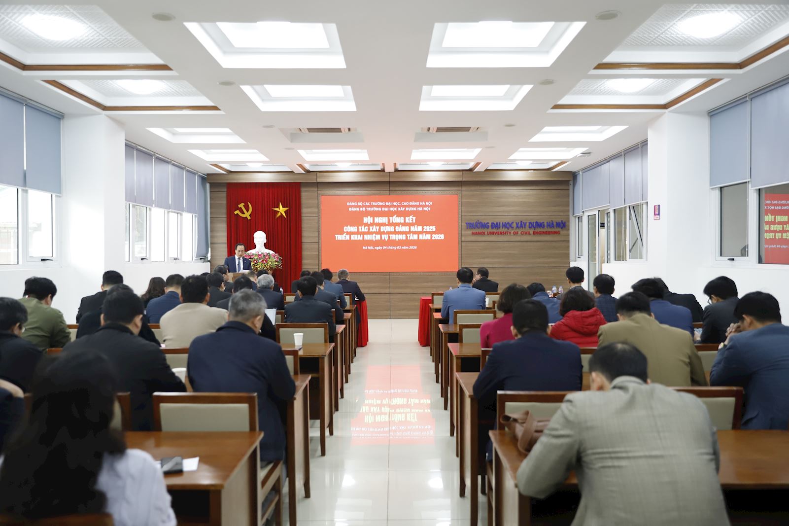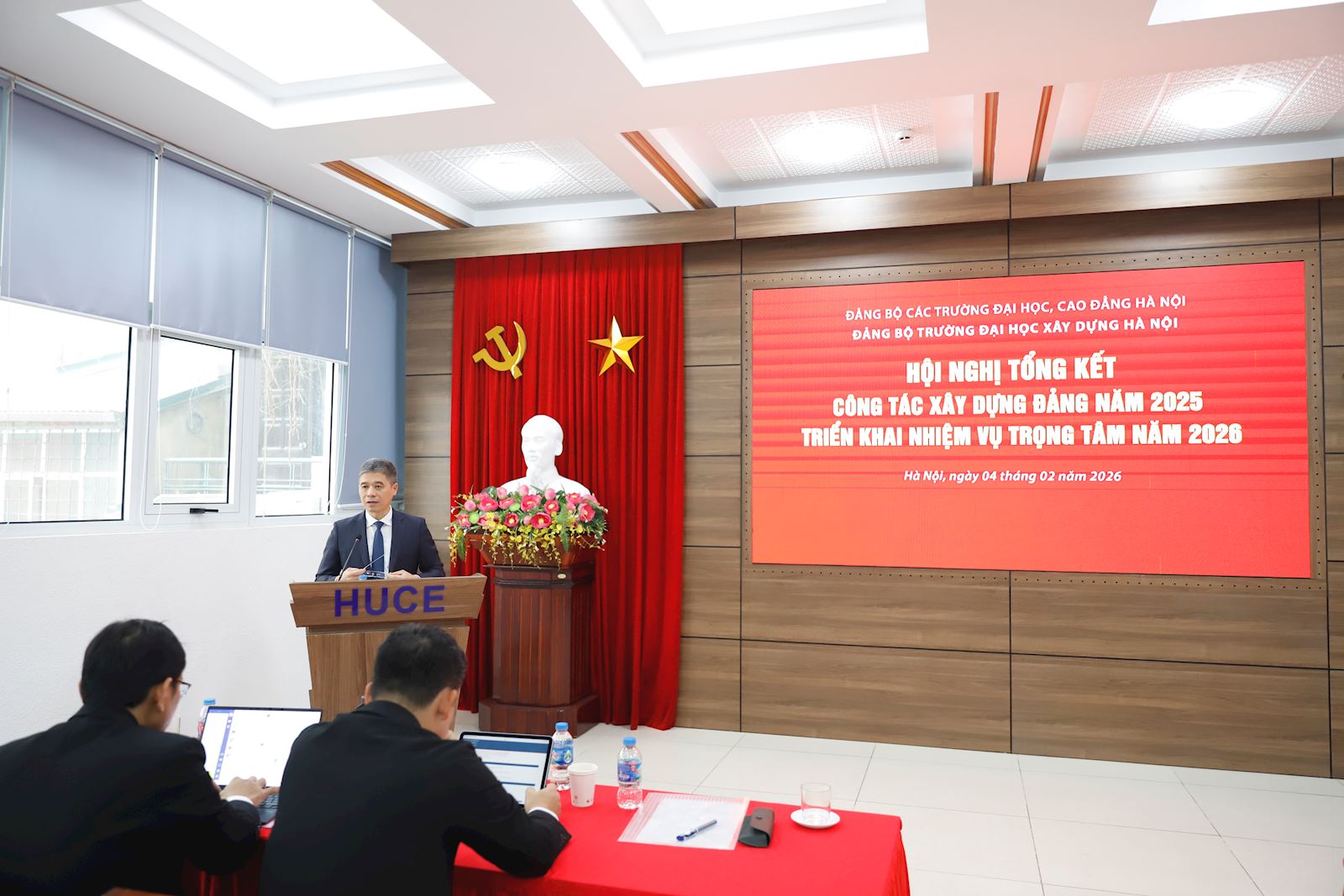 Thực hiện Kế hoạch công tác của Ban chấp hành Đảng bộ về lãnh đạo nhiệm vụ năm 2025, ngày 04/02/2026, Đảng ủy trường Đại học Xây dựng Hà Nội (ĐHXDHN) đã tổ chức thành công Hội nghị Tổng kết công tác xây dựng Đảng năm 2025 và triển khai nhiệm vụ trọng tâm năm 2026.