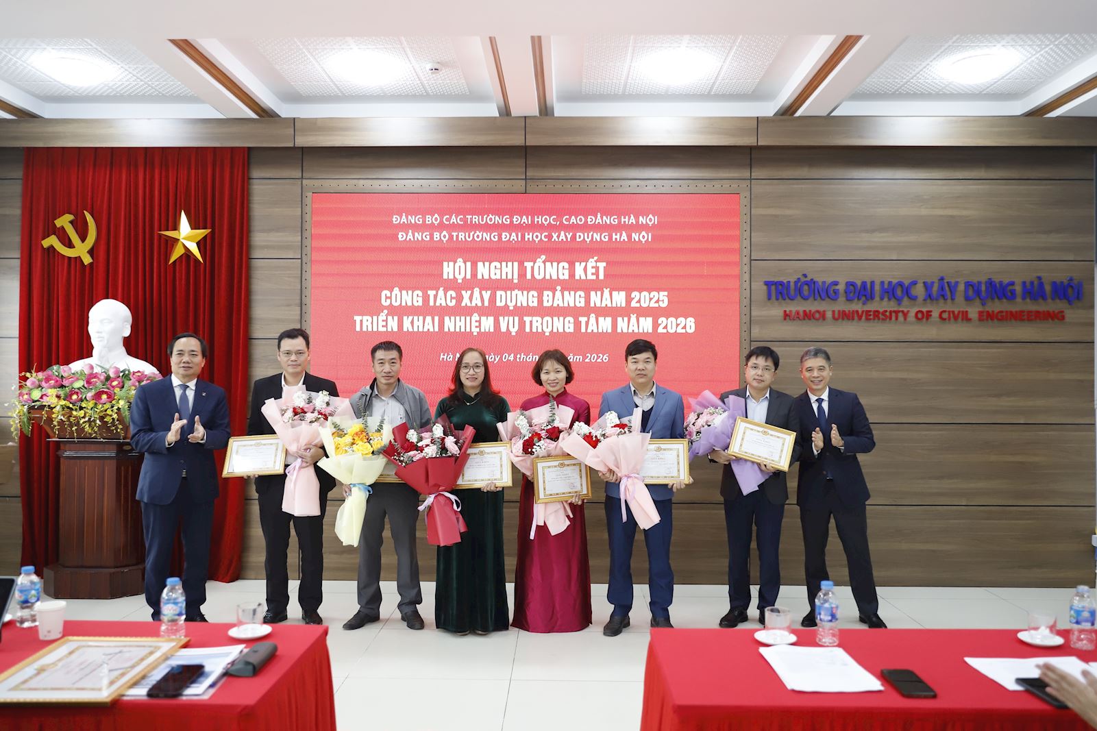 06 tổ chức cơ sở đảng đạt tiêu chuẩn xuất sắc năm 2025 nhận Giấy khen của Đảng ủy Trường ĐHXDHN