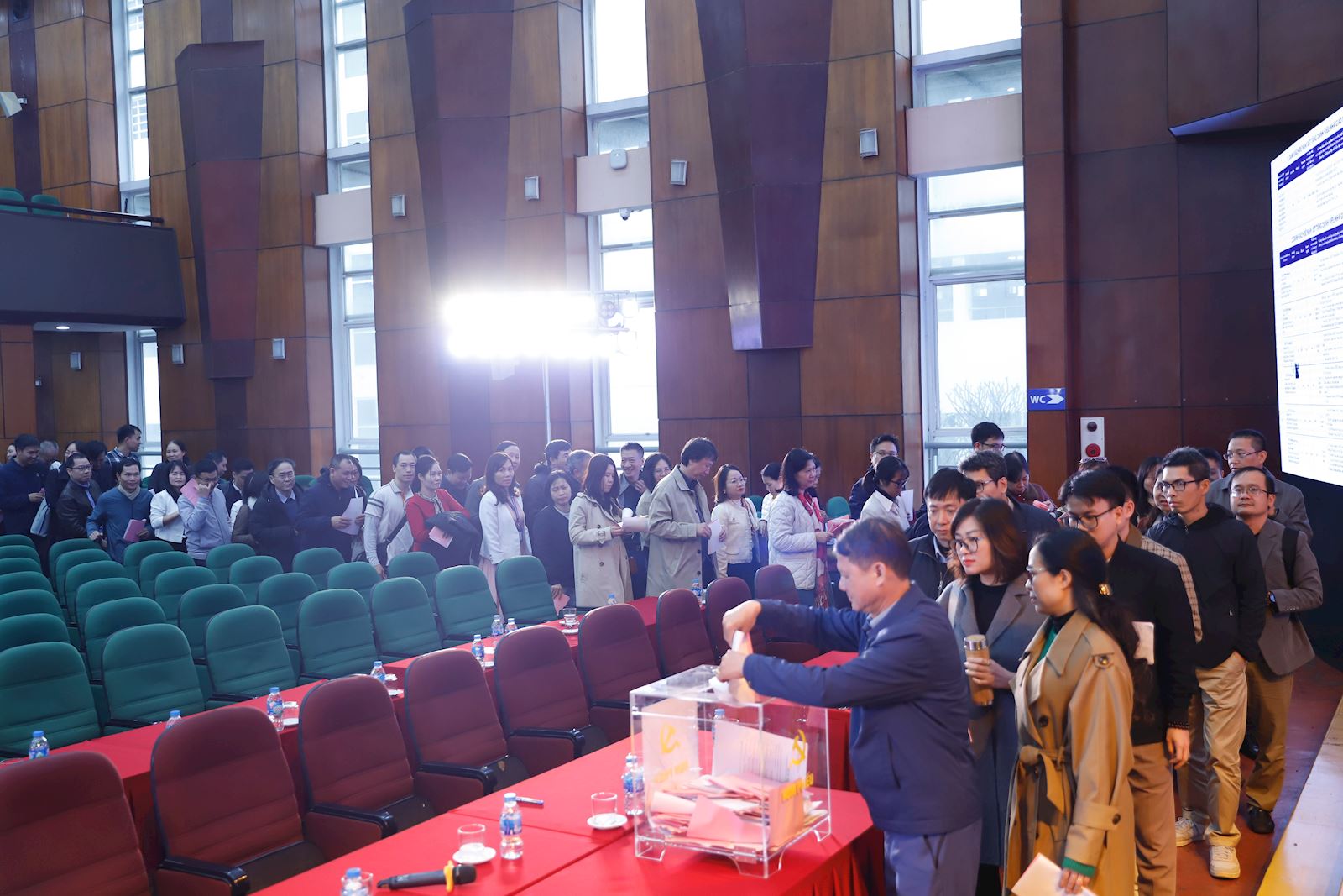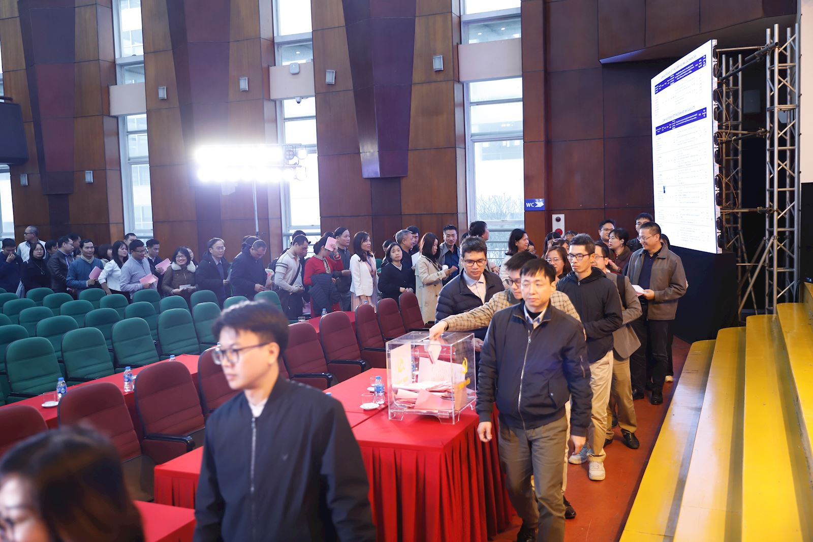 Hội nghị đã bầu ra Ban Kiểm phiếu và thực hiện công tác hướng dẫn, bỏ phiếu công khai, nghiêm túc. Các cán bộ, viên chức, người lao động trong toàn trường kể cả những nhân sự đang học tập, công tác xa hoặc vì các lý do khác nhau không thể đến trực tiếp sẽ thực hiện trực tuyến, đảm bảo 100% cán bộ viên chức của Trường ĐHXDHN đều được lấy ý kiến đối với các ứng viên.