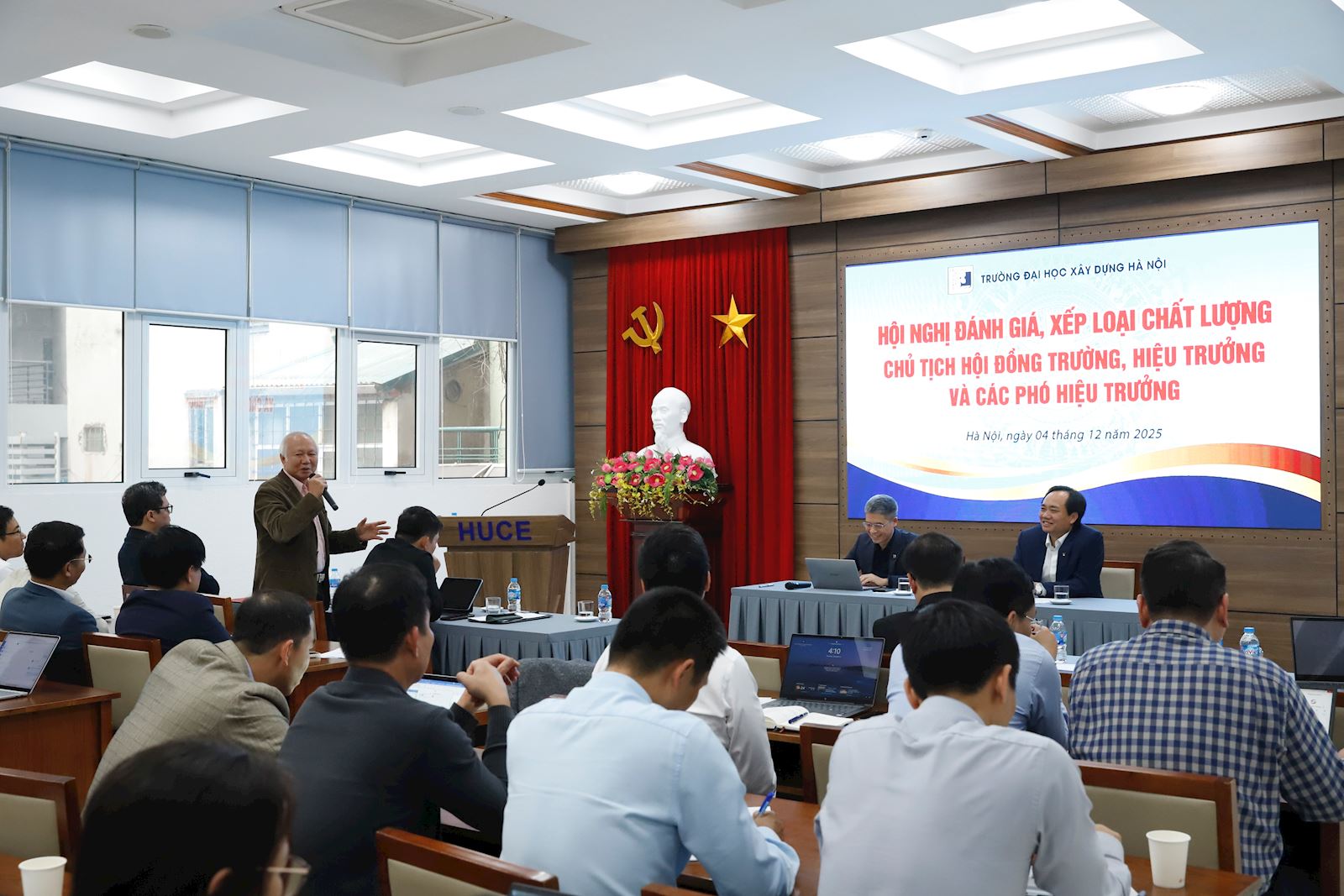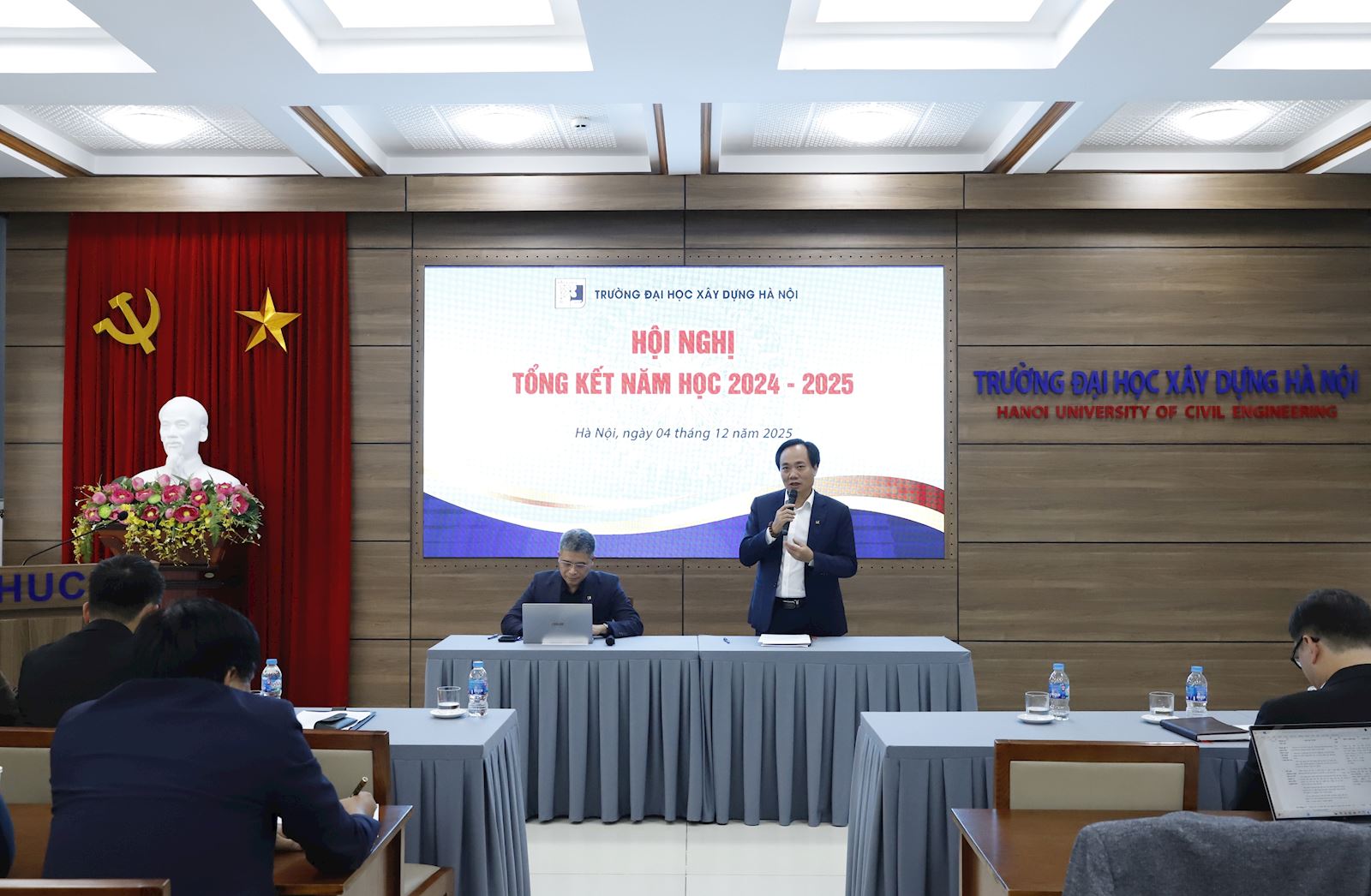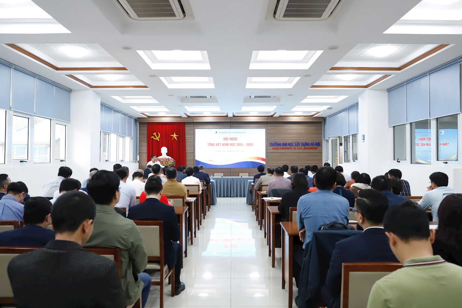 Ngày 04/12/2025, Trường Đại học Xây dựng Hà Nội tổ chức các Hội nghị Tổng kết năm học; Đánh giá, xếp loại chất lượng Trường; Đánh giá, xếp loại chất lượng Chủ tịch Hội đồng trường, Hiệu trưởng và các Phó Hiệu trưởng năm học 2024 - 2025.