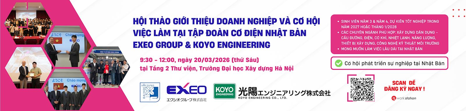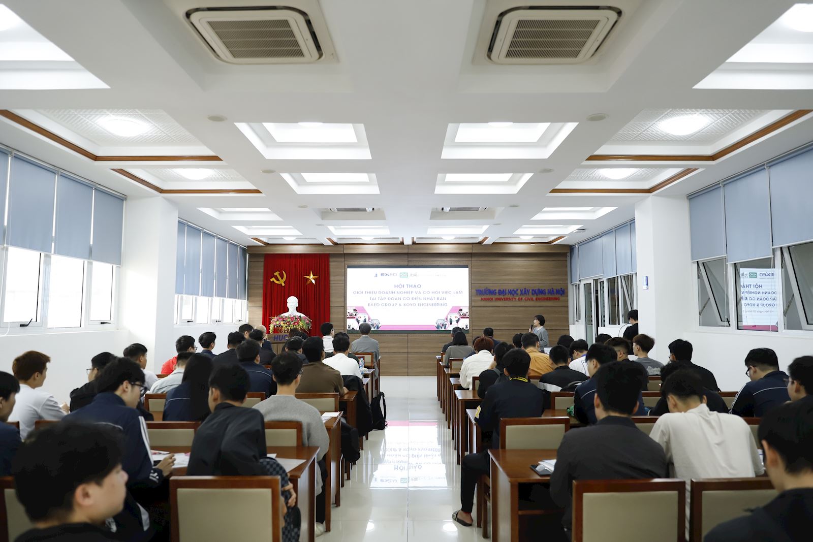 Sáng 20/3/2026, Trường Đại học Xây dựng Hà Nội và Tập đoàn Cơ điện EXEO Group, Inc. (Nhật Bản) phối hợp cùng công ty Koyo Engineering tổ chức Hội thảo giới thiệu Doanh nghiệp - cơ hội việc làm cho các bạn sinh viên.