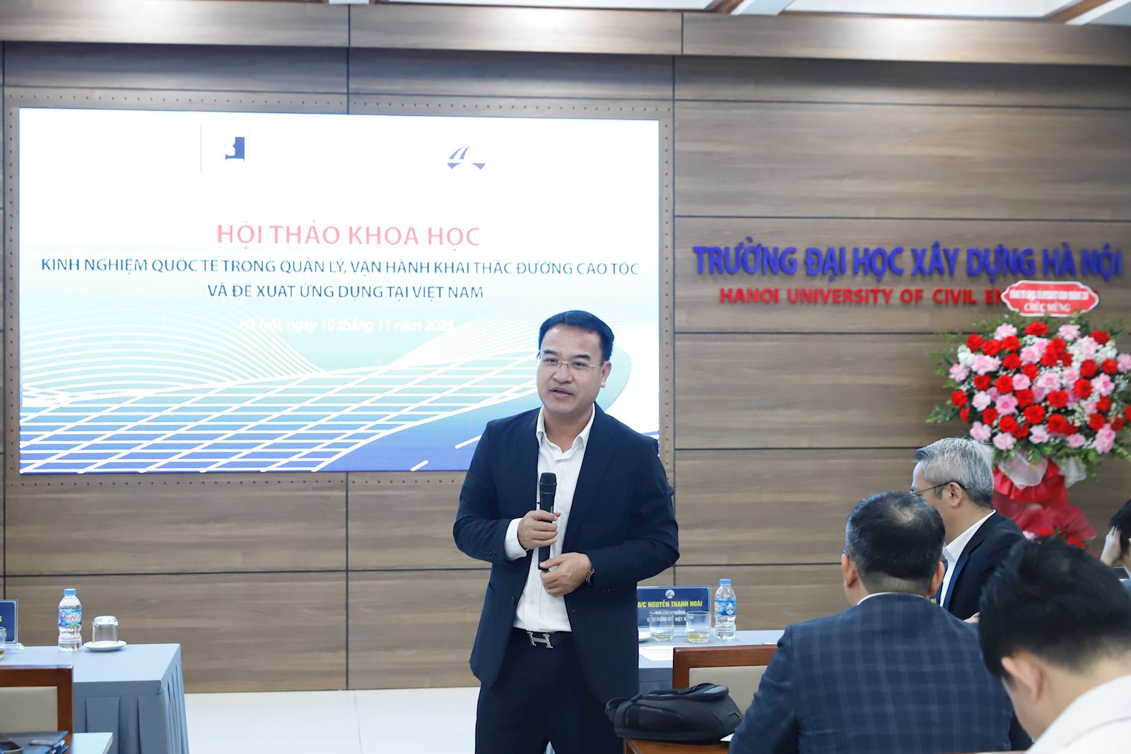 Hà Nội, ngày 10/11/2025 - Nhằm mục đích trao đổi, học hỏi kinh nghiệm quốc tế, thảo luận các giải pháp khoa học - công nghệ và đề xuất các cơ chế, chính sách phù hợp để ứng dụng tại Việt Nam, Trường Đại học Xây dựng Hà Nội phối hợp với Cục Đường bộ Việt Nam tổ chức Hội thảo khoa học với chủ đề: “Kinh nghiệm quốc tế trong quản lý, vận hành khai thác đường cao tốc và đề xuất ứng dụng tại Việt Nam”.