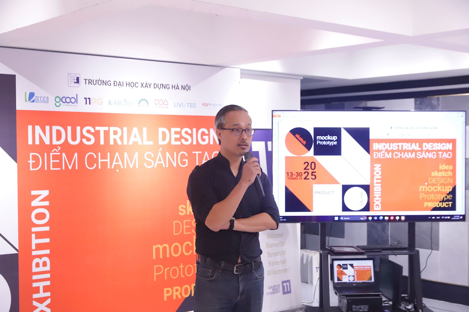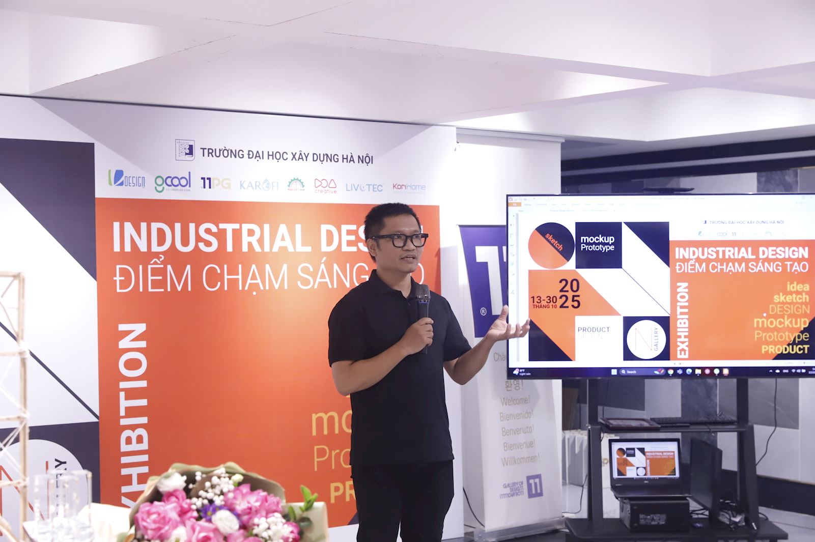 Ông Nguyễn Huy Biển - Người sáng lập, Giám đốc thiết kế Vdesign R&D chia sẻ tại Triển lãm |