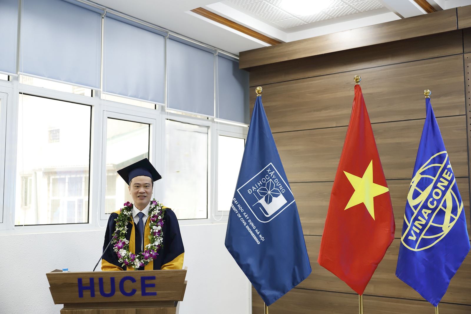 Phát biểu tại buổi lễ, PGS.TS Hoàng Tùng nhấn mạnh đây là một ngày đặc biệt đối với nhà trường khi hoàn thành một nhiệm vụ quan trọng được giao phó từ năm ngoái. Thầy đánh giá rất cao chính sách nhân văn của tập đoàn Vinaconex dành cho cán bộ nhân viên của mình, đồng thời tin tưởng rằng khóa học đã trang bị thêm những kiến thức chuyên môn vững chắc về đường sắt tốc độ cao và đường sắt đô thị. Thầy Hiệu trưởng cũng gửi lời chúc mừng, chính thức chào đón các tân kỹ sư gia nhập cộng đồng cựu sinh viên của trường và tiết lộ thêm về việc nhà trường sẽ tiếp tục khai giảng một lớp học đặc biệt về xây dựng nhà máy điện hạt nhân vào tuần tới