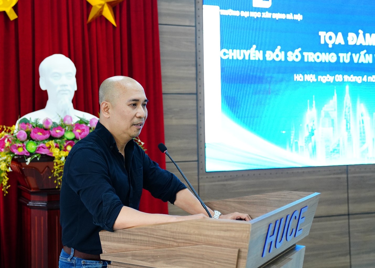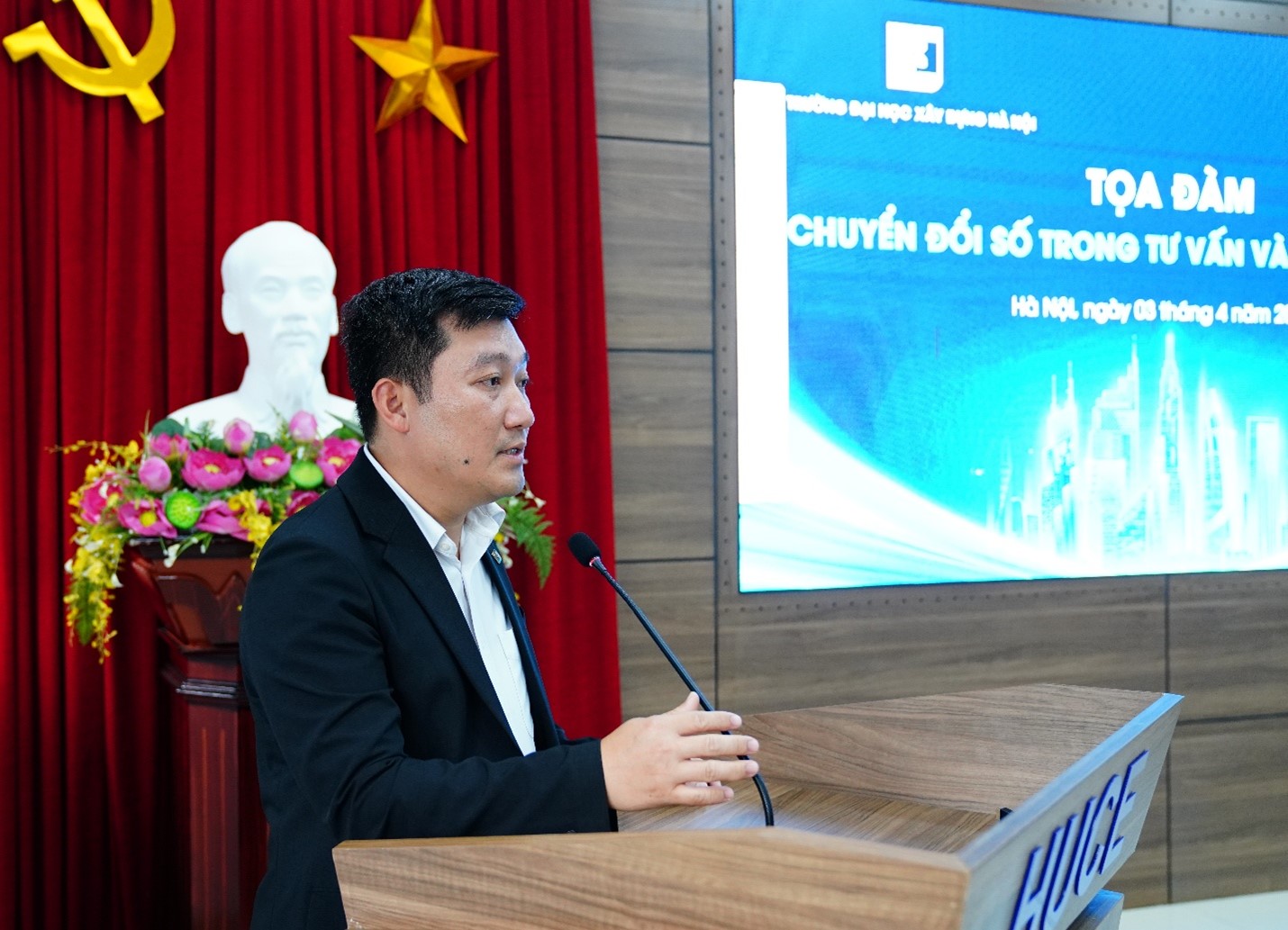 Đại diện lãnh đạo Trường Đại học Xây dựng Hà Nội, GS.TS Nguyễn Hoàng Giang – Phó Hiệu trưởng Nhà trường đánh giá cao ý nghĩa của tọa đàm trong việc kết nối giữa Nhà trường, cơ quan quản lý và doanh nghiệp. GS.TS Nguyễn Hoàng Giang khẳng định Nhà trường luôn chú trọng cập nhật các xu hướng công nghệ mới vào đào tạo và nghiên cứu, góp phần cung cấp nguồn nhân lực chất lượng cao phục vụ ngành xây dựng trong thời kỳ chuyển đổi số. Bên cạnh đó, Thầy cũng nhấn mạnh tầm quan trọng của việc hoàn thiện hệ thống tiêu chuẩn, quy chuẩn kỹ thuật, đồng thời khuyến khích các doanh nghiệp, đơn vị tư vấn đẩy mạnh ứng dụng công nghệ số nhằm đáp ứng yêu cầu thực tiễn.