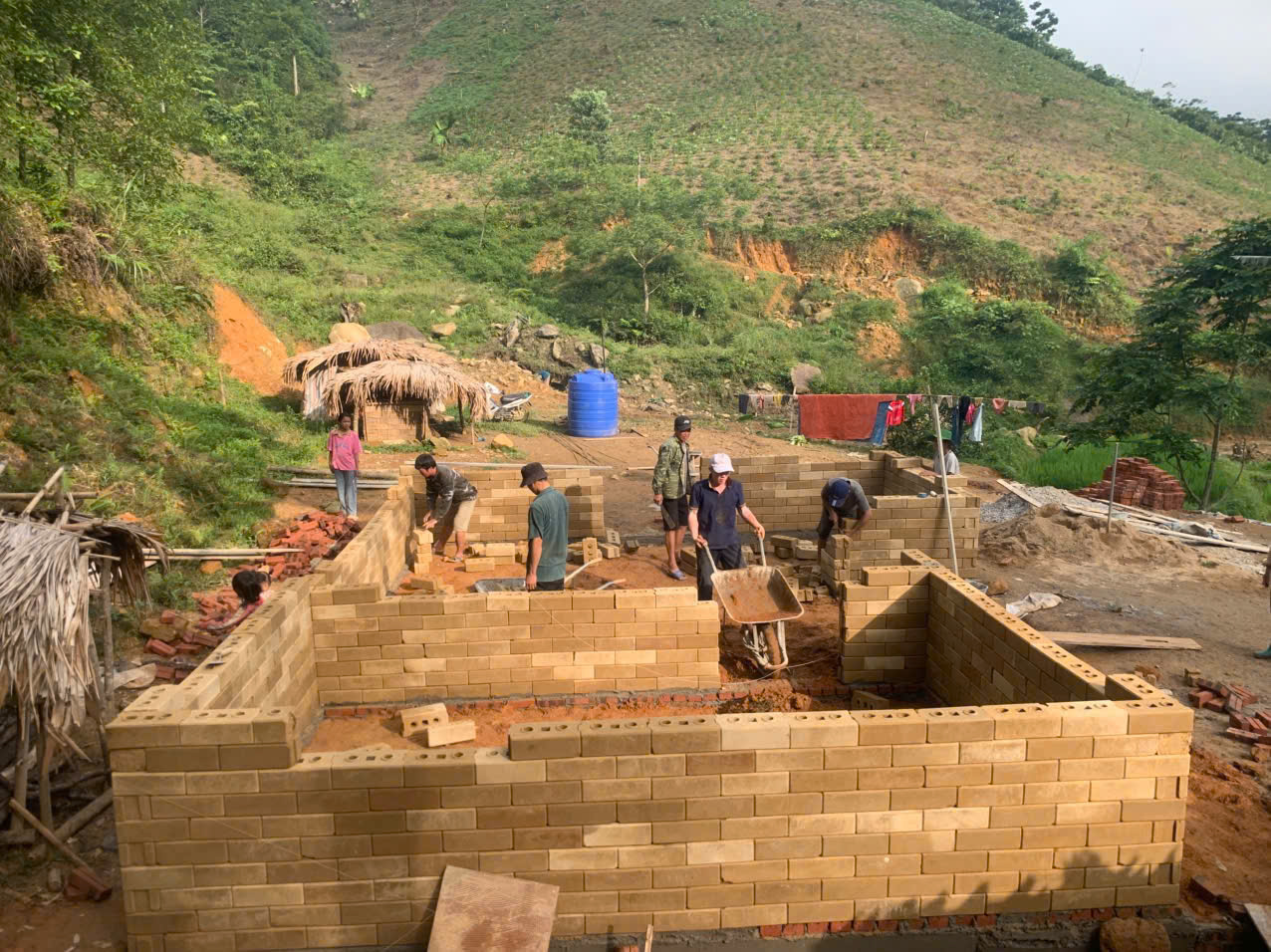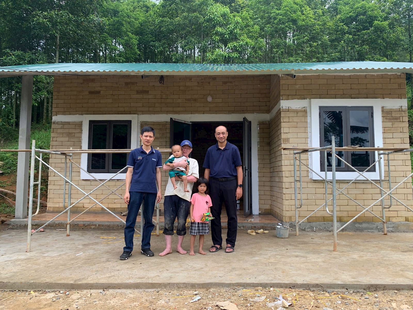 Đại diện Đại sứ quán Vương quốc Bỉ, lãnh đạo UBND xã Cao Sơn, Trường ĐHXDHN, ĐH Phenikaa và nhà tài trợ Vietcombank trao tặng Nhà Nhân ái cho gia đình ông Xa Văn Ngọc