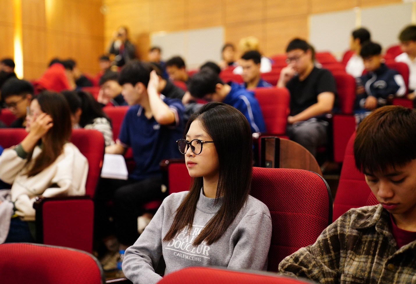 Các bạn sinh viên chăm chú nghe thuyết trình
