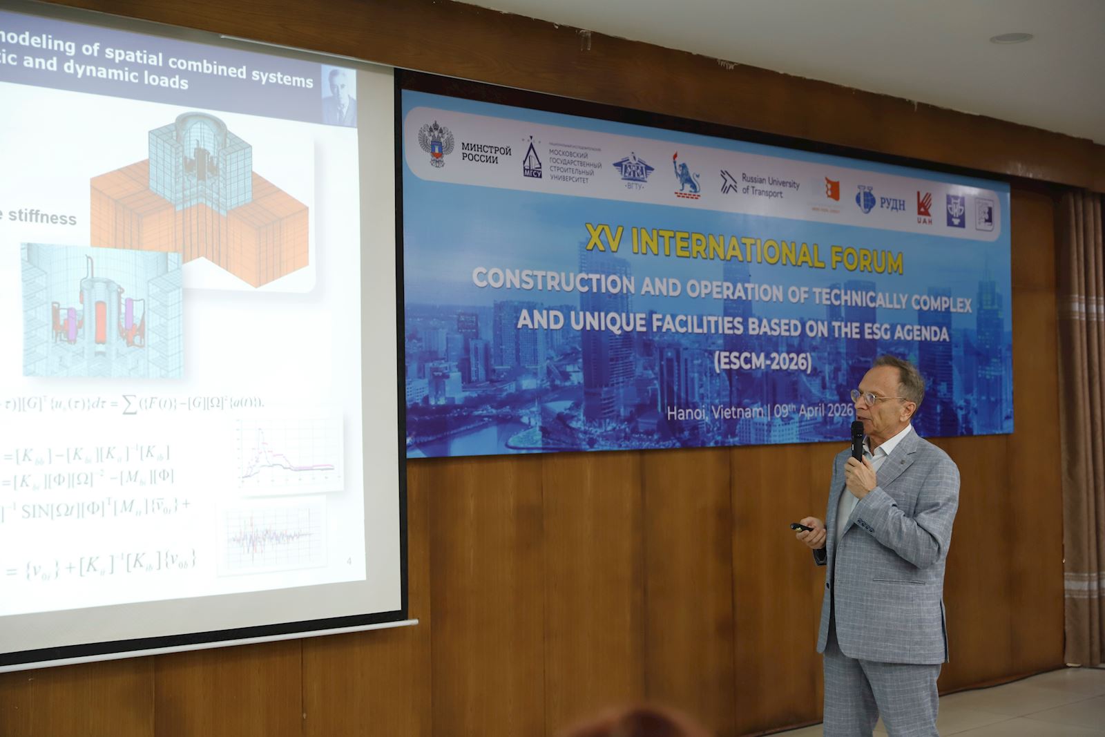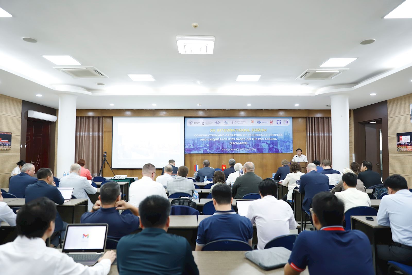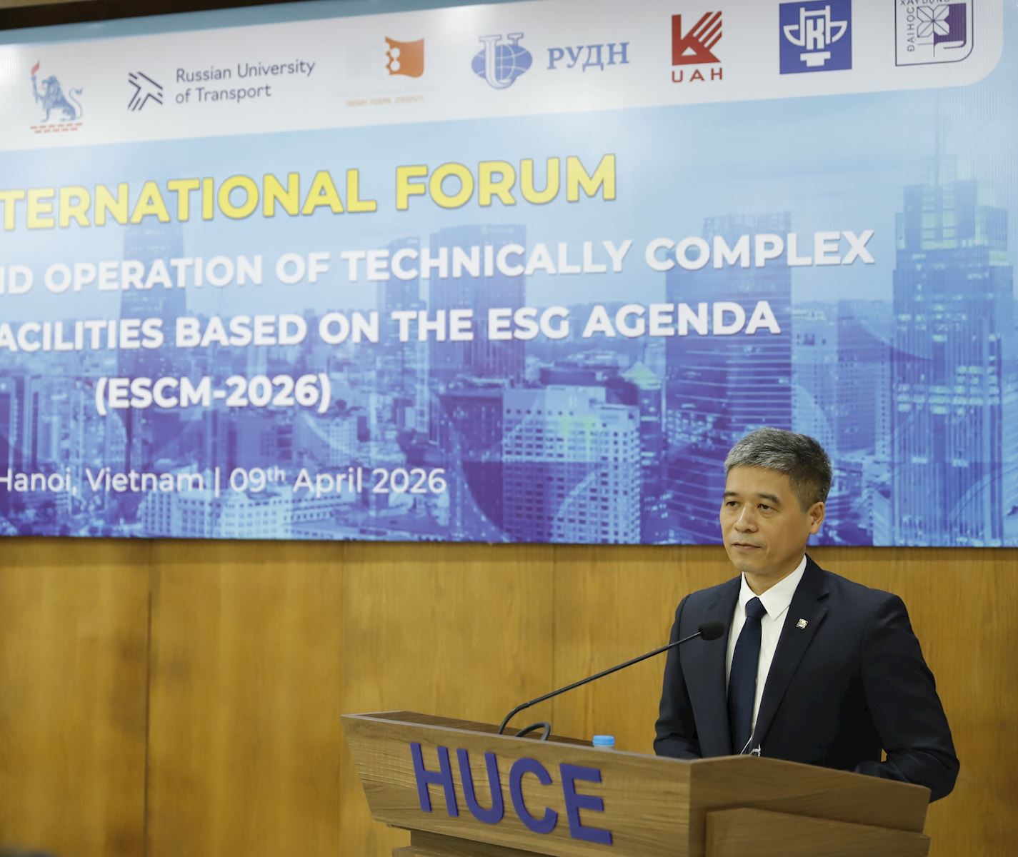 Ngày 09/4/2026, Diễn đàn ESCM-2026 với chủ đề “Xây dựng và vận hành các công trình kỹ thuật phức tạp và độc đáo theo định hướng Phát triển bền vững (ESG)” do Trường Đại học Xây dựng Hà Nội (ĐHXDHN) phối hợp cùng Đại học Xây dựng Quốc gia Moscow (MGSU) và Đại học Hữu nghị Nhân dân Nga (RUDN) đồng tổ chức đã chính thức khép lại với nhiều dấu ấn rực rỡ. Thành công của diễn đàn mang ý nghĩa vô cùng to lớn khi Trường ĐHXDHN đang hướng tới kỷ niệm 60 năm thành lập và 70 năm đào tạo.