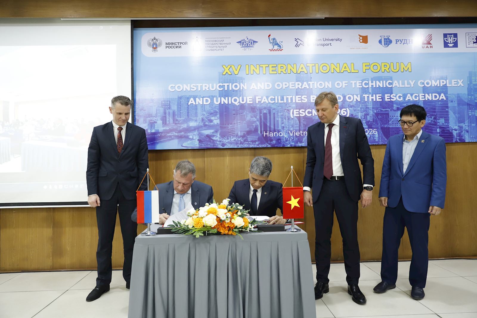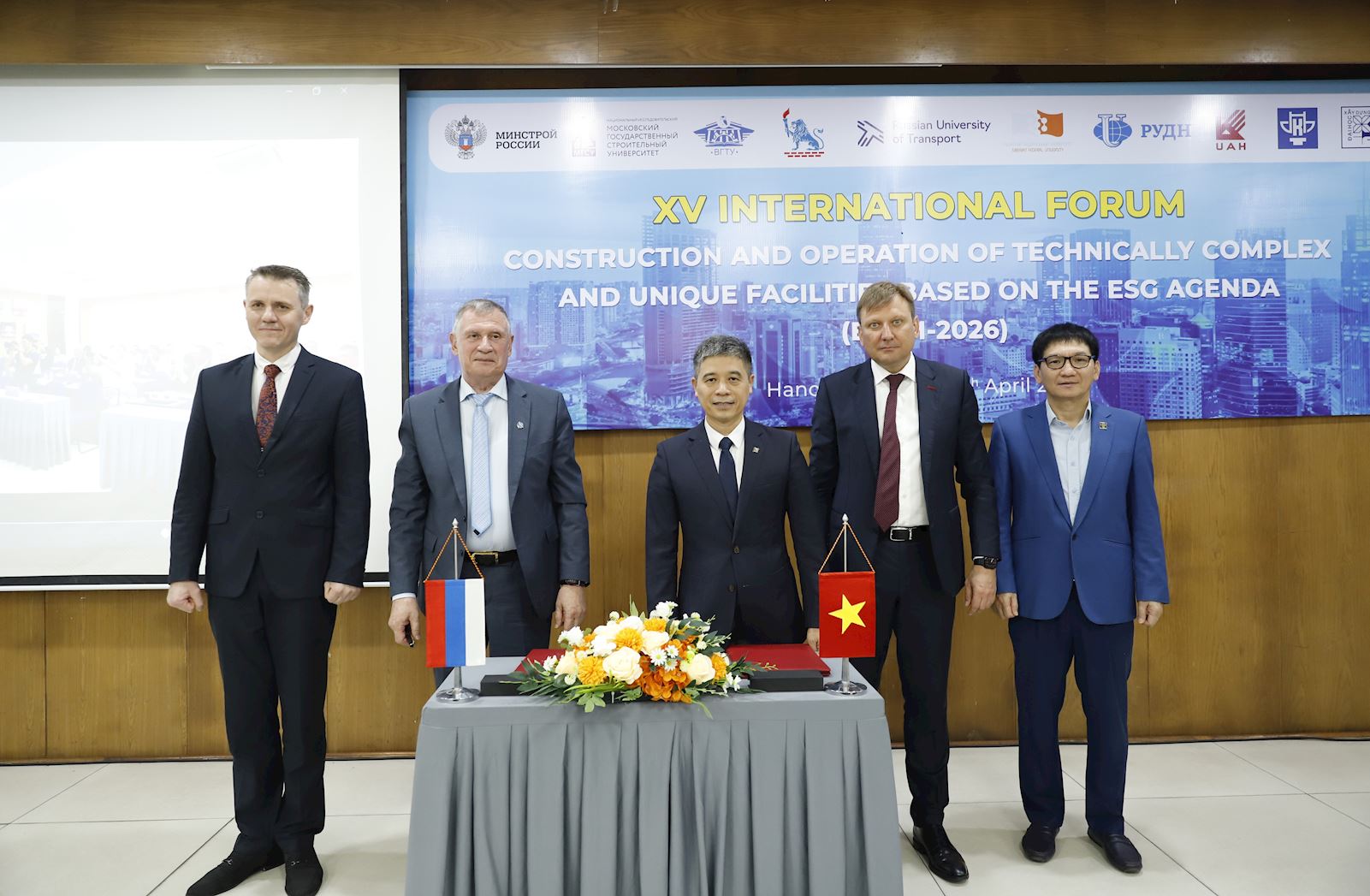 Tại Diễn đàn, Đại diện Trường ĐHXDHN và Đại học Xây dựng Quốc gia Moscow đã tổ chức Ký kết Biên bản Thỏa thuận hợp tác. Theo đó, Trường ĐHXDHN và MGSU thống nhất triển khai nhiều hoạt động hợp tác trong việc đào tạo nhân lực chất lượng cao, nghiên cứu khoa học, chuyển giao công nghệ trong nhiều lĩnh vực, đặc biệt là những ngành liên quan xây dựng công trình đặc biệt như xây dựng Nhà máy điện Hạt nhân và các công trình liên quan.