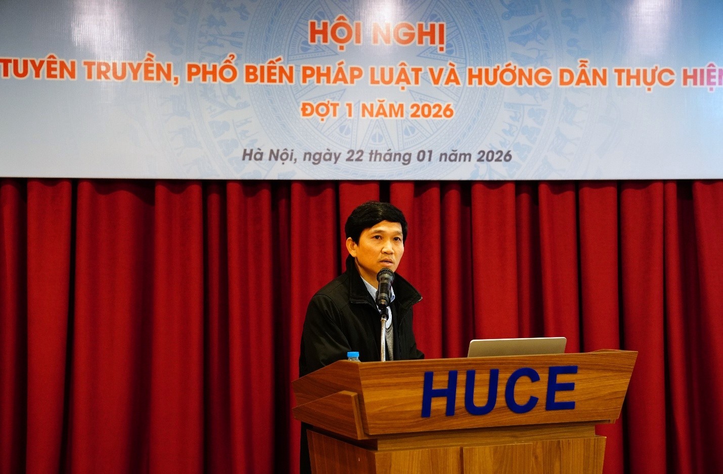 Ngày 22/01/2026, Trường Đại học Xây dựng Hà Nội đã tổ chức Hội nghị tuyên truyền, phổ biến pháp luật và hướng dẫn thực hiện các quy định mới về Luật giáo dục đại học và Luật nhà giáo. Hội nghị nhằm cập nhật kịp thời những nội dung pháp luật mới ban hành, góp phần nâng cao nhận thức, thống nhất cách hiểu và tổ chức thực hiện hiệu quả trong toàn trường.