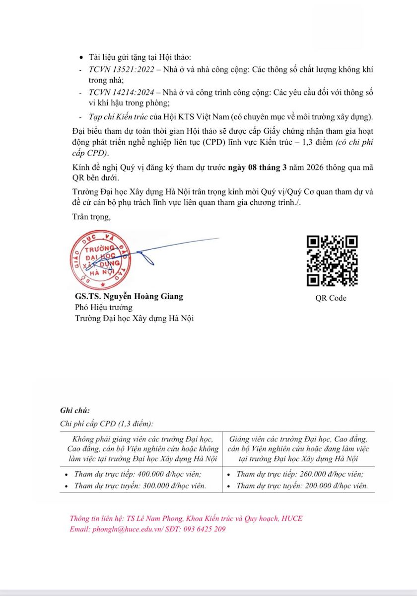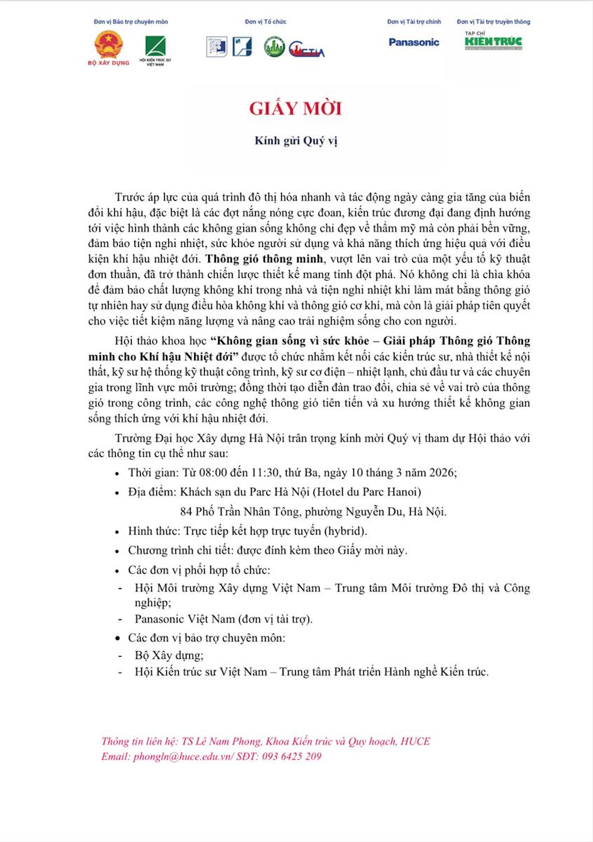 Trường Đại học Xây dựng Hà Nội trân trọng kính mời Quý vị tham dự Hội thảo với các thông tin cụ thể như sau: