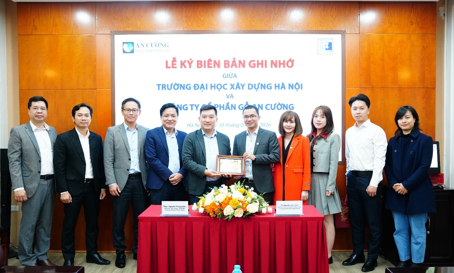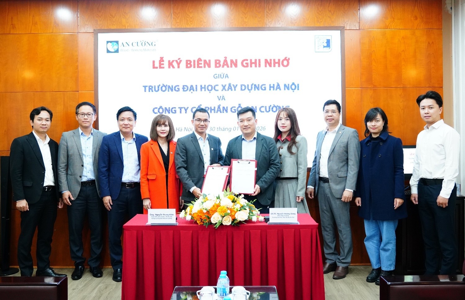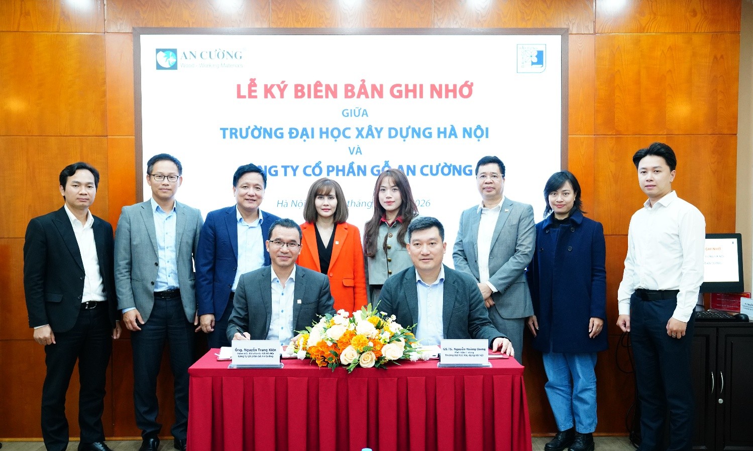 Nhằm tăng cường mối quan hệ hợp tác giữa nhà trường và doanh nghiệp, thúc đẩy hoạt động đào tạo, nghiên cứu khoa học và chuyển giao công nghệ gắn với thực tiễn, ngày 30/01/2026, Trường Đại học Xây dựng Hà Nội (HUCE) đã long trọng tổ chức Lễ ký kết Biên bản ghi nhớ hợp tác (MOU) với Công ty Cổ phần Gỗ An Cường.