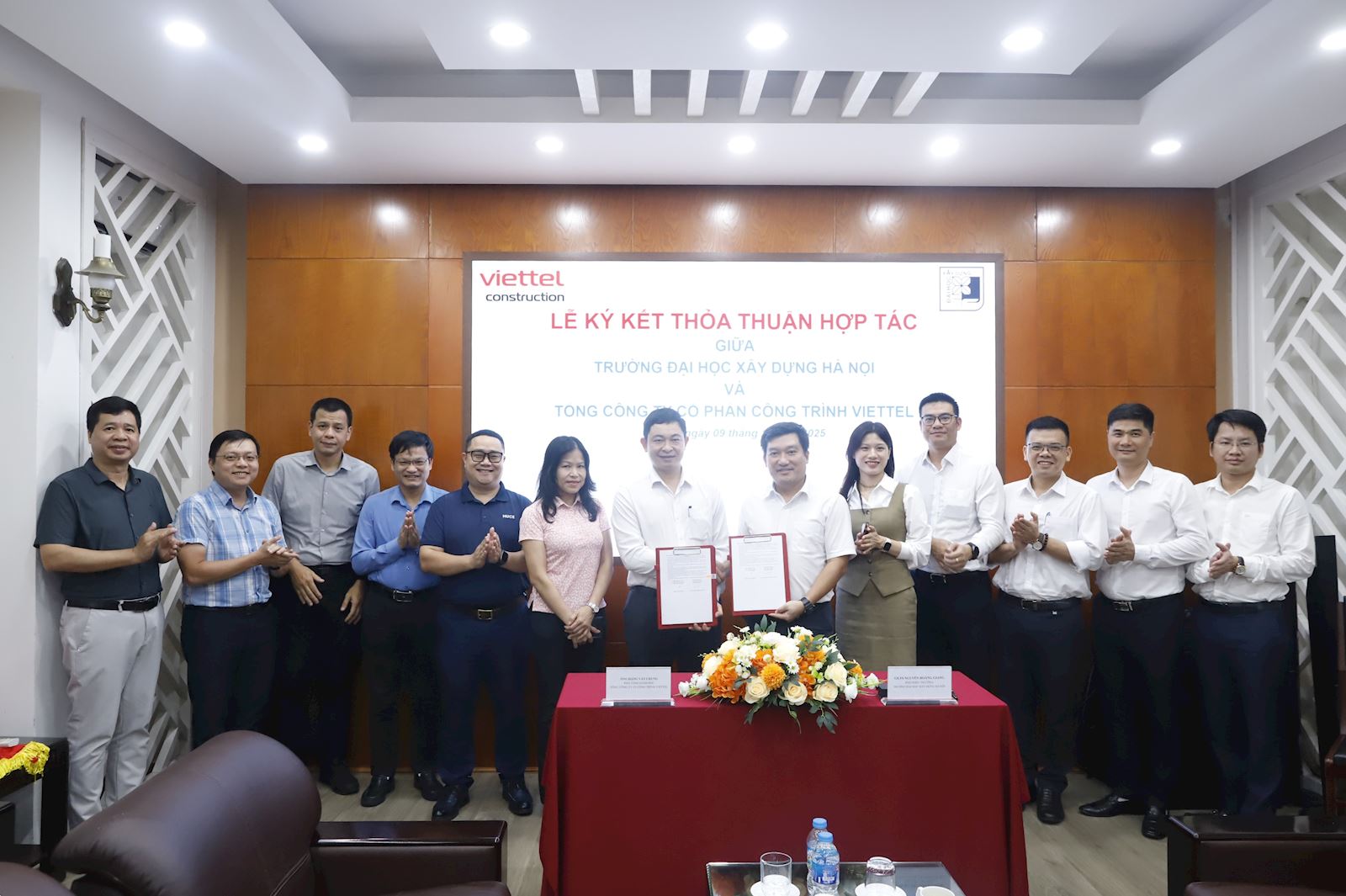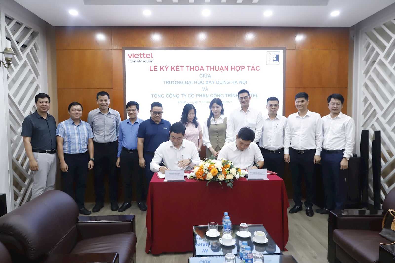 Ngày 09/10/2025, Trường Đại học Xây dựng Hà Nội (ĐHXDHN) và Tổng Công ty Cổ phần Công trình Viettel (Viettel Construction) đã tổ chức ký kết Biên bản Thỏa thuận Hợp tác.
