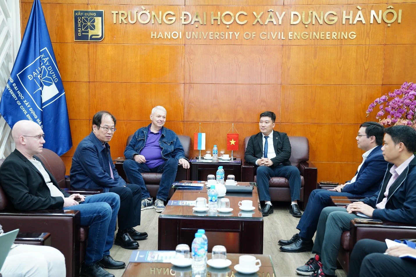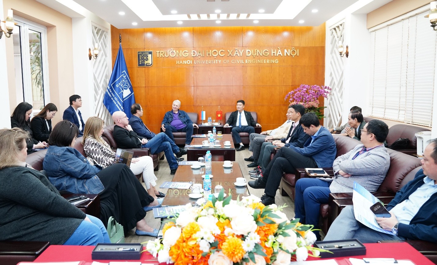 Về phía Trường ĐHXDHN có GS.TS Nguyễn Hoàng Giang – Phó Hiệu trưởng; GS. Trần Đức Hạ - Khoa Kỹ thuật Môi trường; PGS.TSKH Bạch Đình Thiên – Khoa Vật liệu Xây dựng; PGS.TS Vũ Anh Tuấn – Trưởng khoa Xây dựng Dân dụng và Công nghiệp; PGS.TS Nguyễn Quốc Toản – Trưởng khoa Kinh tế và Quản lý Xây dựng; PGS.TS Nguyễn Đức Lượng – Trưởng khoa Kỹ thuật Môi trường; ThS. Nghiêm Hà Tân – Phó trưởng phòng Đối ngoại – Hợp tác quốc tế.