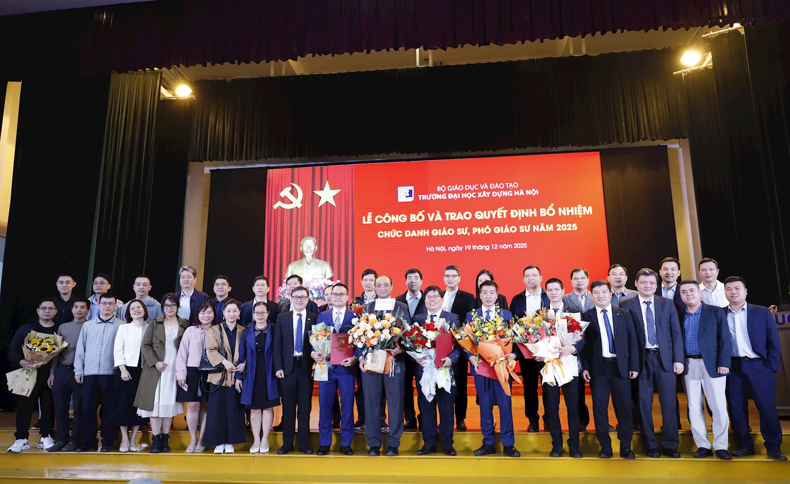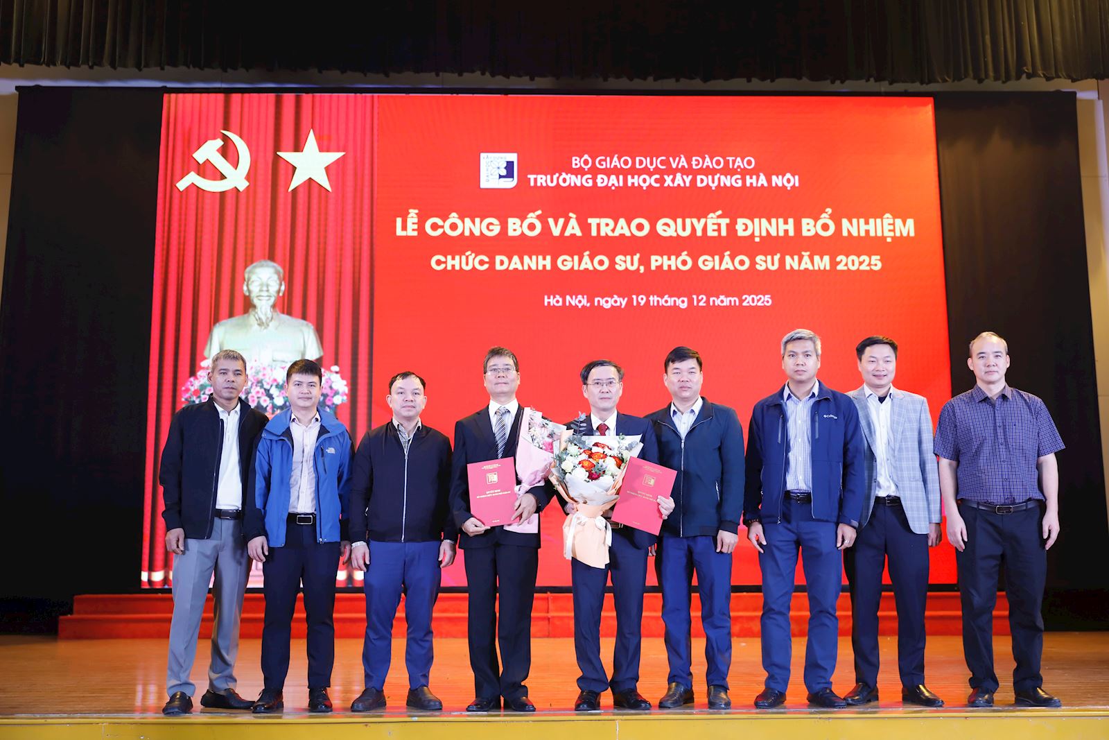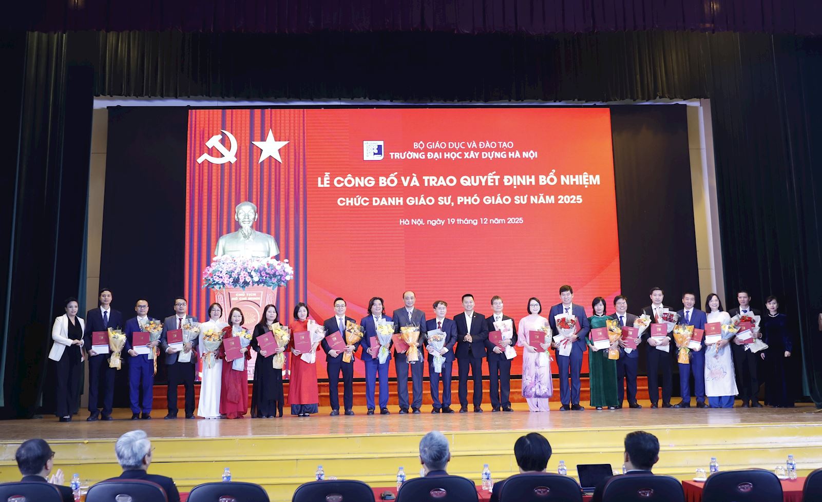 Ngày 19/12/2025, Trường Đại học Xây dựng Hà Nội đã long trọng tổ chức Lễ Công bố và Trao Quyết định bổ nhiệm chức danh Giáo sư (GS) và Phó Giáo sư (PGS) năm 2025. Đây là một sự kiện đặc biệt khẳng định vị thế và tầm vóc của Trường Đại học Xây dựng Hà Nội trong công tác giảng dạy và nghiên cứu khoa học.