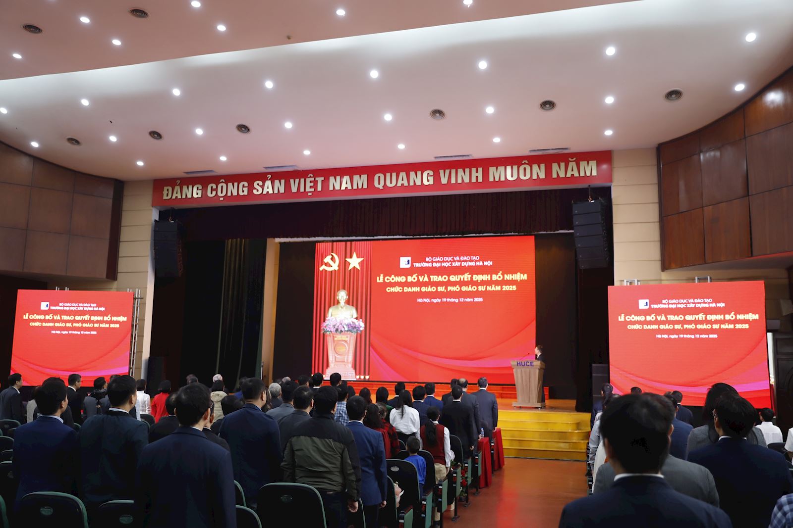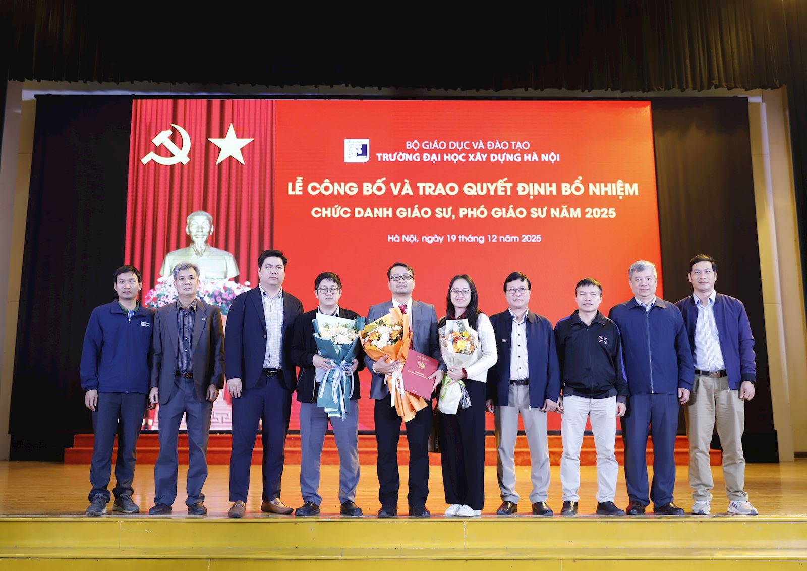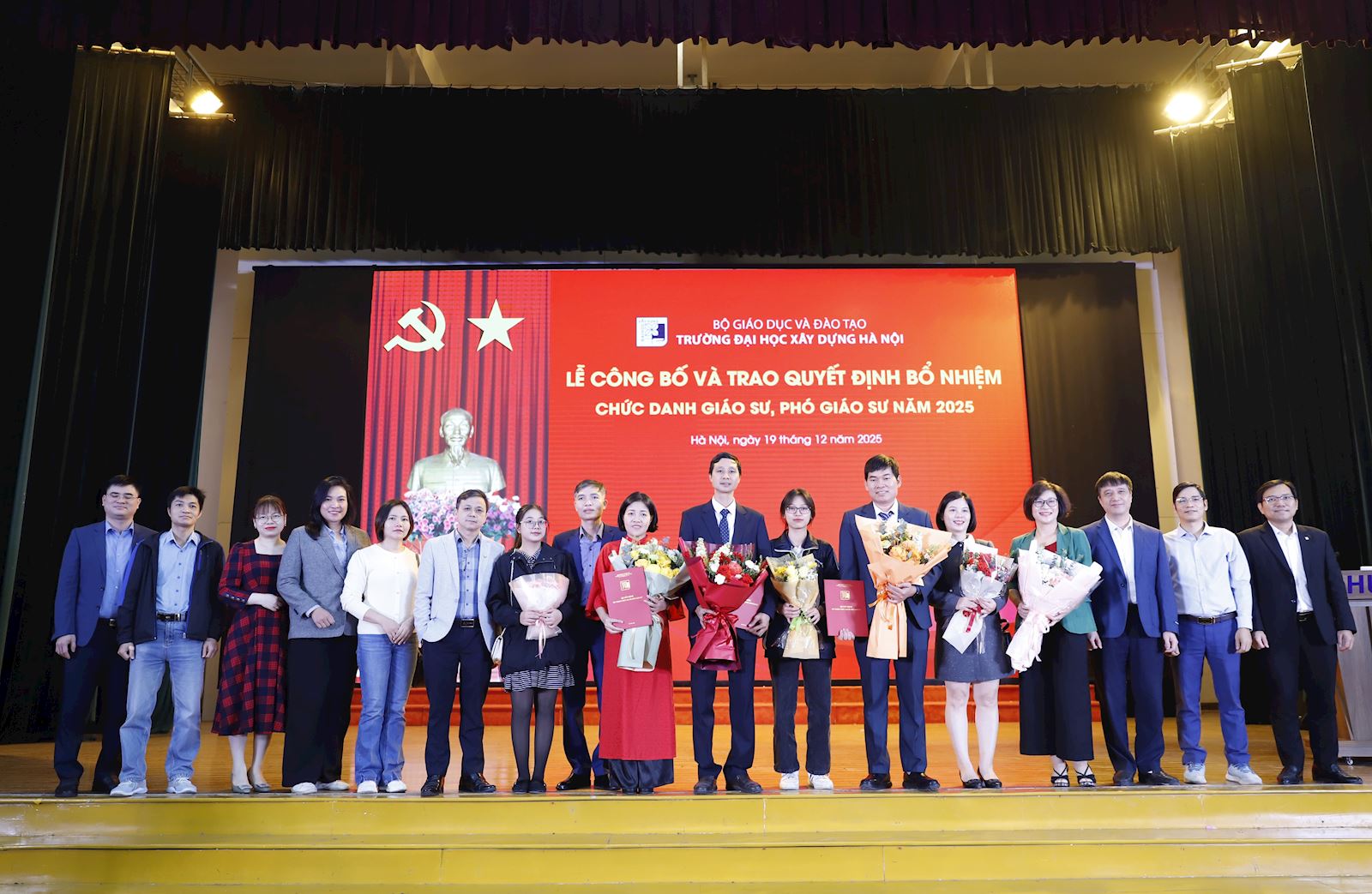 Ngày 19/12/2025, Trường Đại học Xây dựng Hà Nội đã long trọng tổ chức Lễ Công bố và Trao Quyết định bổ nhiệm chức danh Giáo sư (GS) và Phó Giáo sư (PGS) năm 2025. Đây là một sự kiện đặc biệt khẳng định vị thế và tầm vóc của Trường Đại học Xây dựng Hà Nội trong công tác giảng dạy và nghiên cứu khoa học.