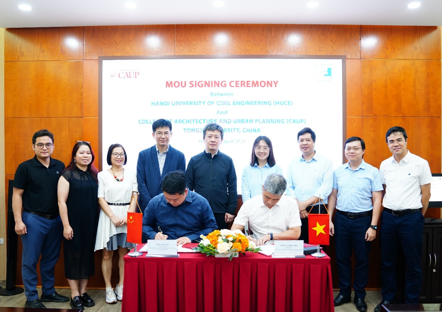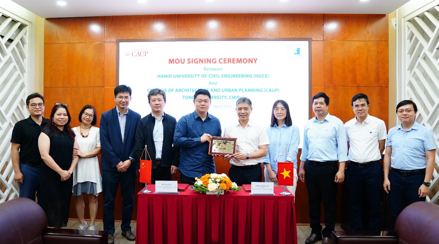 Sáng ngày 21/4/2026, Trường Đại học Xây dựng Hà Nội đã tổ chức Lễ ký kết Thỏa thuận hợp tác với Trường Kiến trúc & Quy hoạch Đô thị, Đại học Đồng Tế (Trung Quốc). Sự kiện là dấu mốc quan trọng trong việc tăng cường hợp tác quốc tế, thúc đẩy phát triển đào tạo và nghiên cứu trong lĩnh vực kiến trúc và quy hoạch đô thị giữa hai đơn vị.