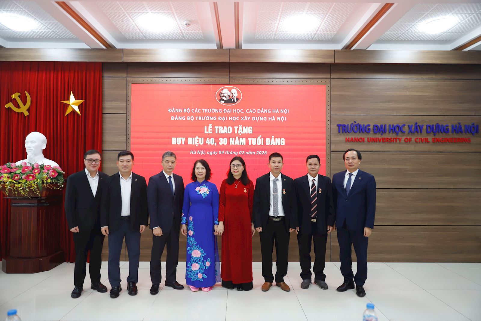 Sáng 04/02/2026, Đảng bộ Trường Đại học Xây dựng Hà Nội (ĐHXDHN) long trọng tổ chức Lễ trao tặng Huy hiệu 40, 30 năm tuổi Đảng cho các đồng chí đảng viên của Đảng bộ Trường ĐHXDHN.