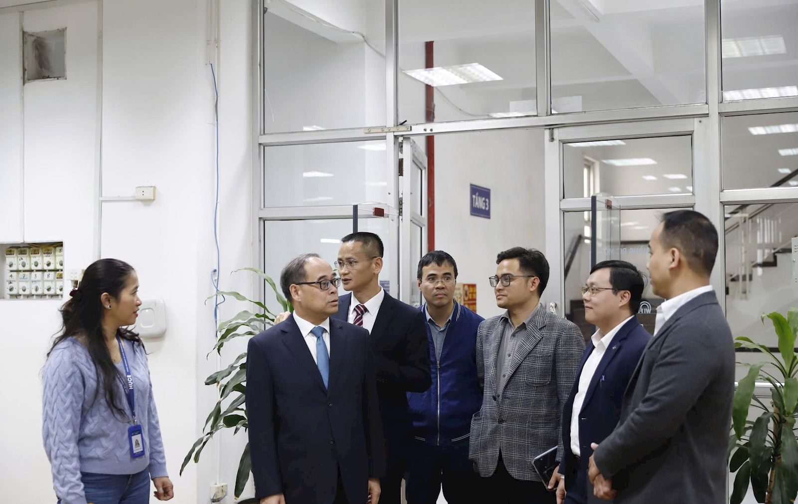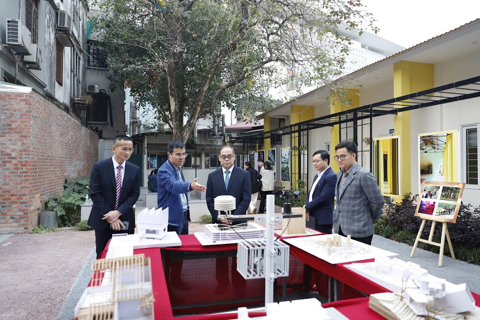Đoàn công tác của Đại sứ quán đã đi tham quan cơ sở vật chất của Nhà trường tại Thư viện, Trung tâm Thí nghiệm về vật liệu cháy tại Tòa nhà Thí nghiệm, Trung tâm đào tạo giải pháp dựa vào thiên nhiên tại khuôn viên nhà C4. Ông La Diệu Quang – Tham tán Đại sứ quán đặc biệt ấn tượng với các công trình được ứng dụng từ các nghiên cứu của của chuyên gia và phục vụ trực tiếp các công tác của Nhà trường.